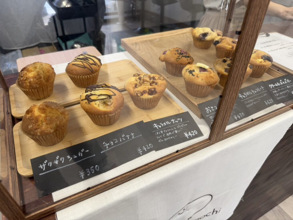 店内では、ドーナツやマフィン、焼き菓子、サンドイッチ、コーヒーを味わうことができます。この日はマフィンがメインでしたが、人気商品は13時頃には売り切れることもあるとか。お気に入りを狙うなら、早めの来店がおすすめです。マフィンの種類は日替わりなので、最新情報はぜひInstagramでチェックしてみてください。