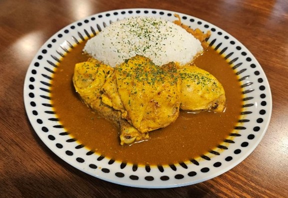 人気メニューは、ホロホロの鶏モモ肉がゴロリと入ったチキンカレー。見た目もインパクトがあり、鶏肉はフォークとナイフで食べ進める満足度が高い一品です。トロリとするまで煮込んだ豚軟骨の旨みがたまらない、コラーゲンたっぷりのパイカカレーもおすすめ。