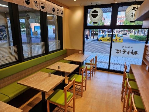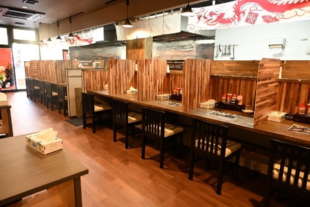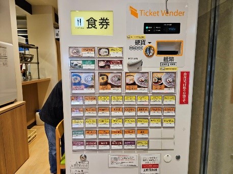 券売機で食券を買ったら、そのまま席へ。短時間で番号が呼ばれるので、急いでいる人にもおすすめです。分かりやすく写真付きのボタンがあるため、インバウンドの利用も多いそうです。木材などを使用した木目調の明るい店舗は、鳥取砂丘の砂をイメージしています。