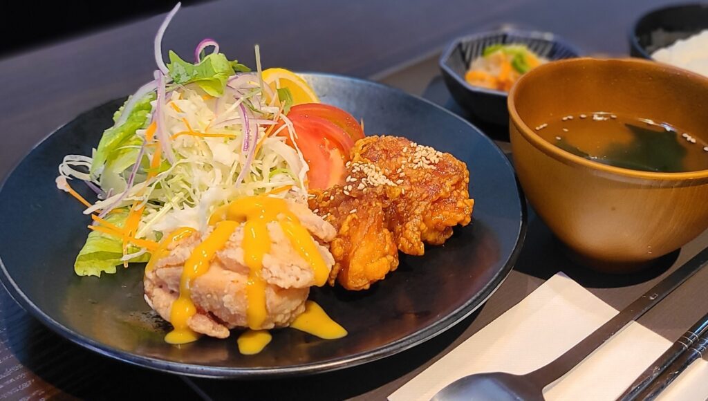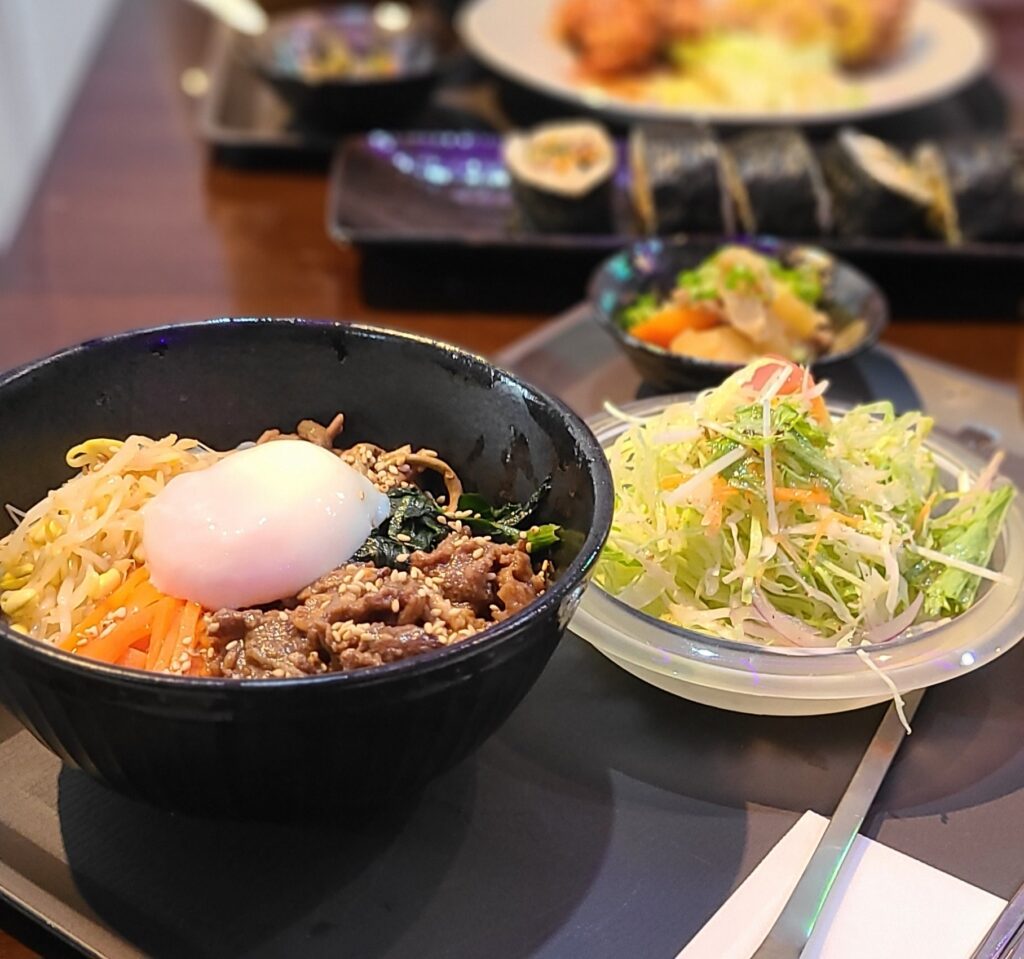 おすすめは、コチュジャンベースで甘辛い味の「ヤンニョムチキン」または、ハチミツのまろやかなコクと甘さがマスタードの風味が合わさった甘辛い味付けの「ハニーマスタードチキン」のどちらかを選ぶ「韓国ランチ」。(ご飯と小鉢、スープ付き)どちらのチキンも食べたい欲張りさんにうれしい「よくばり2種」メニューもあります。そのほか、「辛ラーメンランチ」や小鉢とサラダが付いた「ビビンバ丼セット」、韓国の海苔巻き「キンパ」など豊富なメニューがあります。