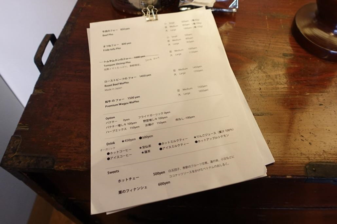 メニューは数種類のフォーの他に、オプションメニューもあります。