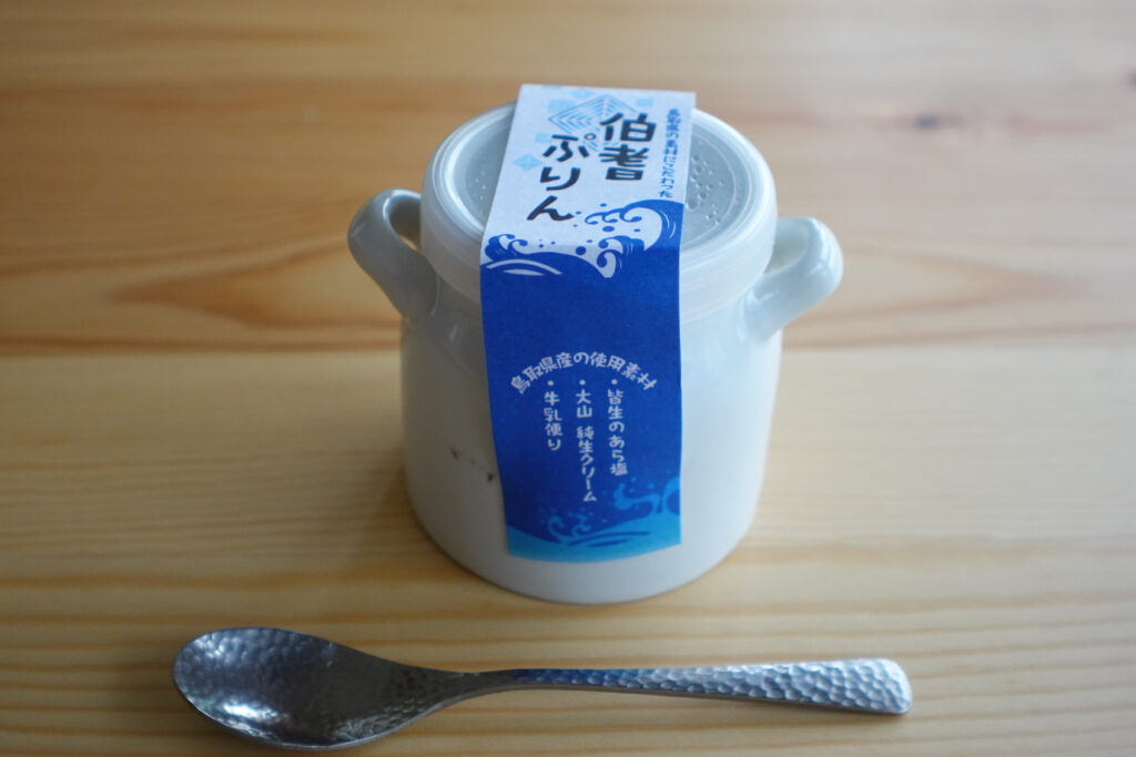 店主さんがかなりこだわって作ったと言われる「伯耆ぷりん」もおすすめ。滑らかでクリーミーなプリンは、我が家の子どもたちが一瞬で平らげました。食べた後に残る瓶が、また可愛らしいんです。