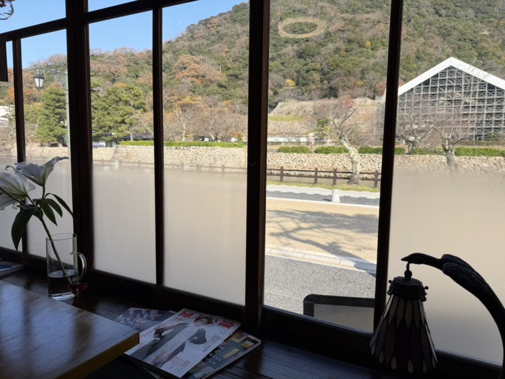店内には大きな窓があり、そこからは鳥取城跡をはじめ、久松山や仁風閣といった歴史ある景色が一望できます。春には桜が咲き誇り、食事をしながら季節の移ろいを感じられる、まさに贅沢なロケーションです。