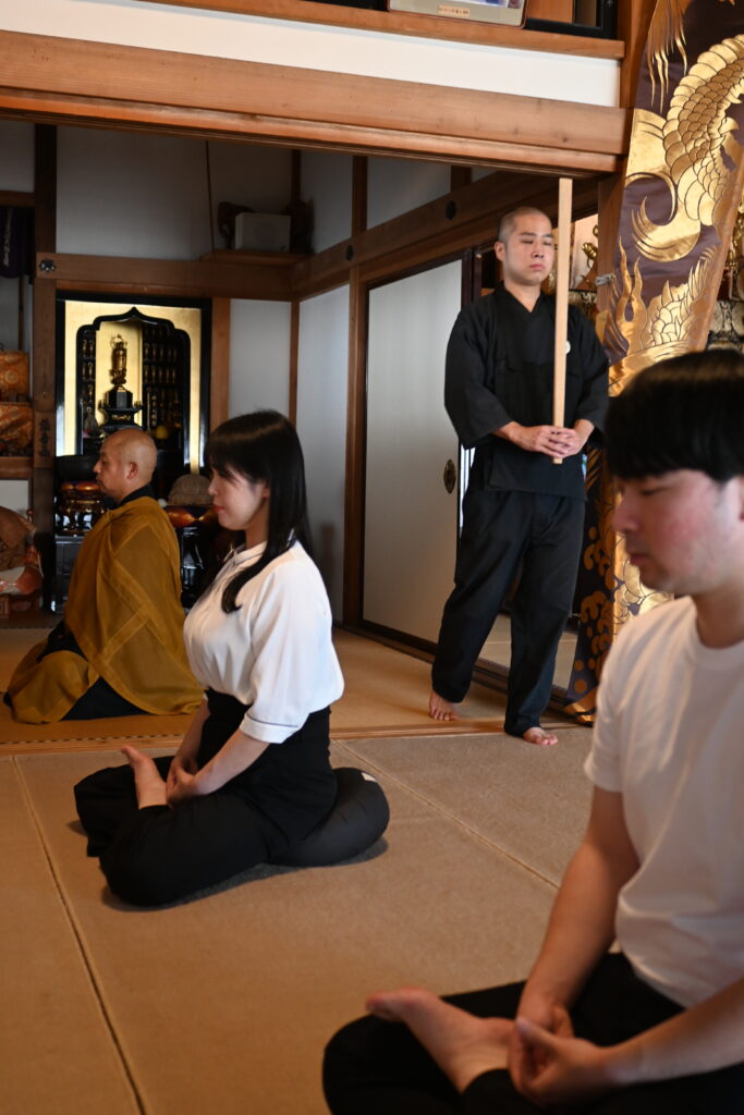 初めて坐禅を体験しましたが、静かな空間で心を整える貴重な時間となり、警策の刺激も新鮮でした。これまでお寺は敷居が高い存在に感じていましたが、今回の体験を通して、もっと気軽に訪れ、自分と向き合う場として利用してもよいのではと感じました。