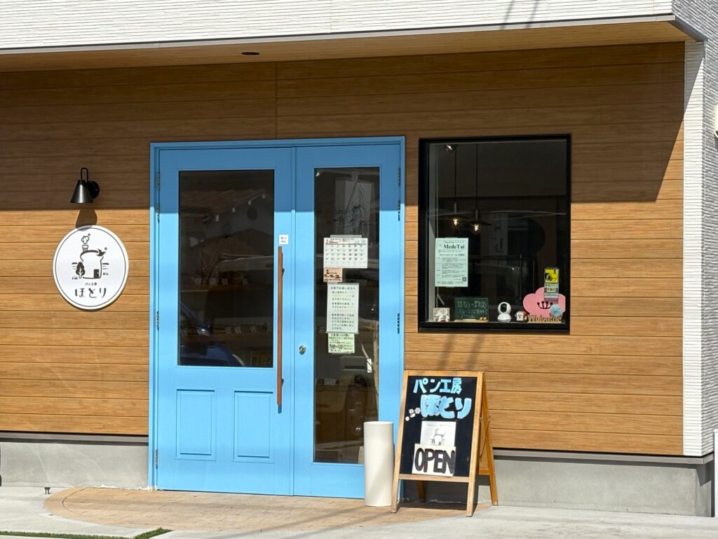 青い扉を開けると、焼きたての香ばしい香りに包まれます。2025年4月、より多くの人にパンを届けたいという思いから移転リニューアルオープン。鳥取市古海で、ファンを増やし続けているベーカリーです。