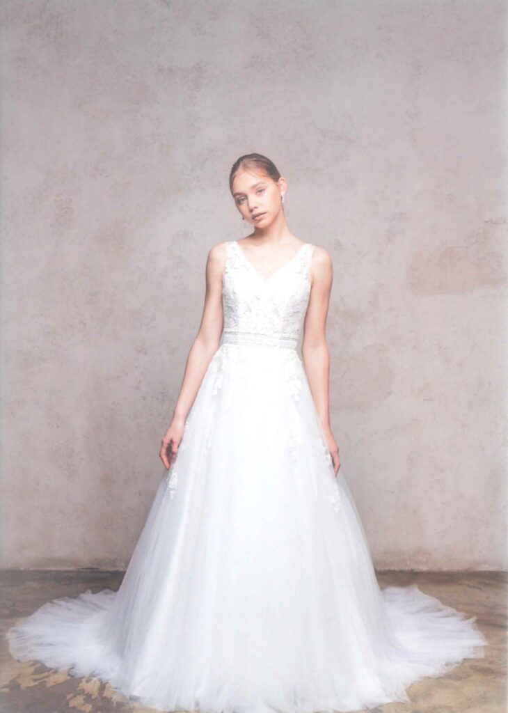 お店では、トレンドを取り入れた洗練されたデザインからクラシックなデザインまで、多彩なコレクションを用意しています。お客さま一人ひとりの個性を引き立てるドレスを心を込めてお選びします。ぜひ、一緒に夢のウェディングドレスを探してみましょう。