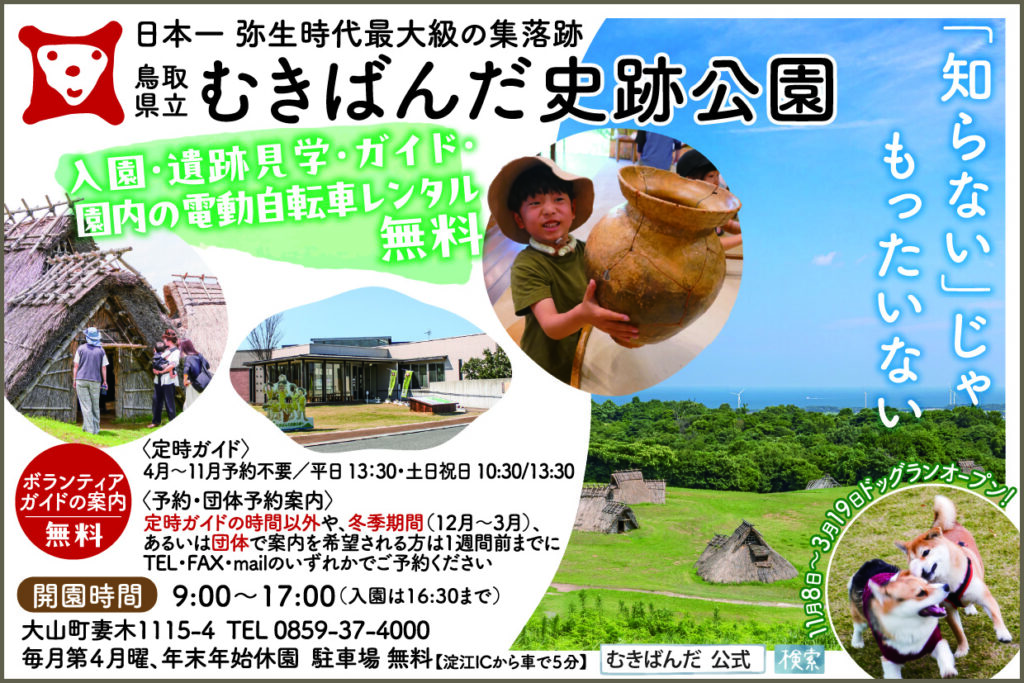 弥生時代最大級の集落跡。入園・遺跡見学・ガイド・園内の電動自転車レンタル無料!雄大な日本海を眺めながら歴史の奥深さに触れてみませんか。