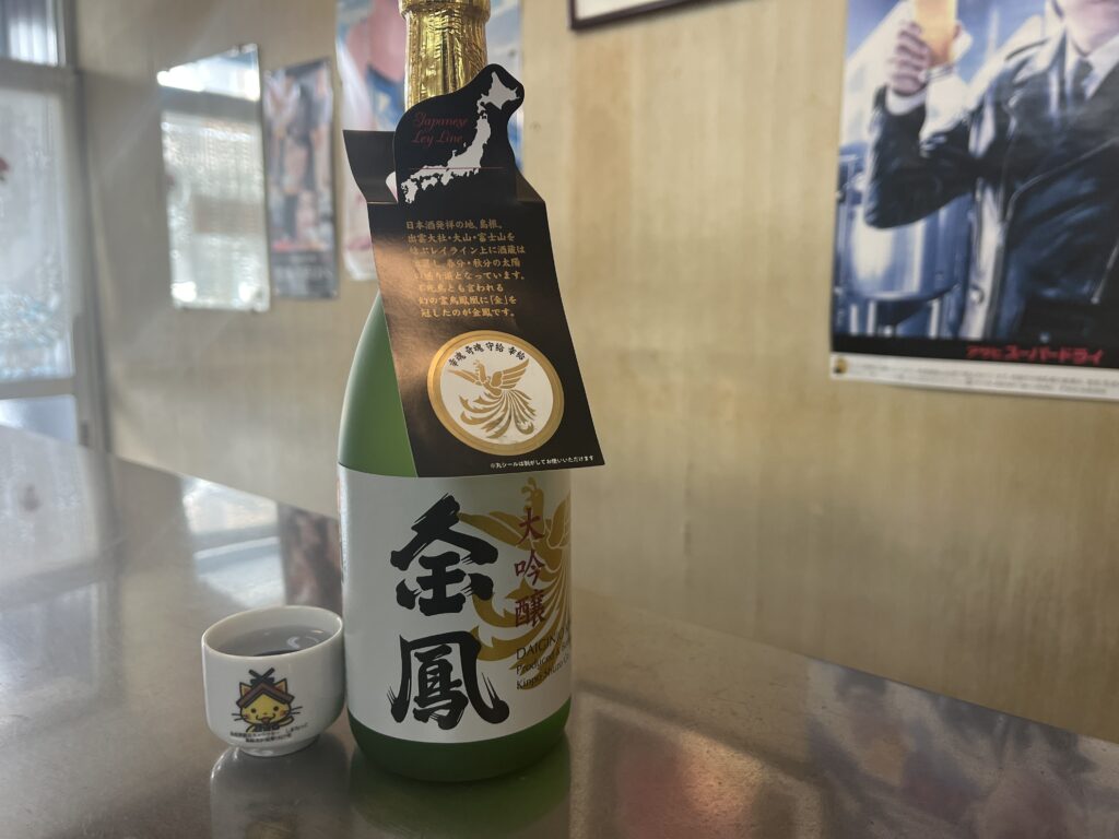 寒い冬におすすめなのは、甘めのお酒を少し温めて飲むこと。紹介してもらったのは安来の「金鳳」。150年続く酒蔵で、出雲大社・大山・富士山を結ぶレイライン上に位置するそう。なんだかご利益がありそうで、飲む前から気分が上がります。