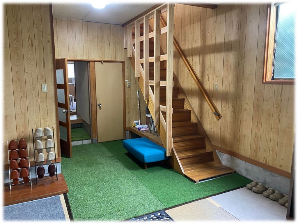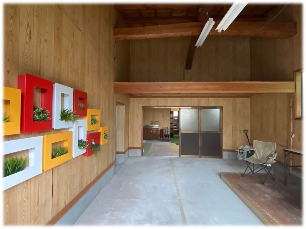玄関には広いフリースペースがあります。土足で使えるので、趣味の活動や家族・友人との団らんなど使い方はさまざま。天候に左右されないのも嬉しいポイントです。