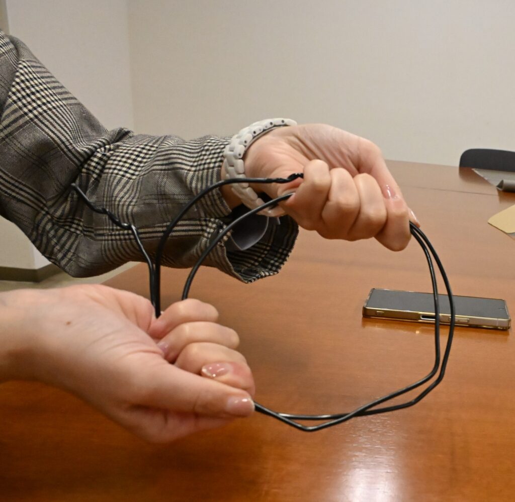 1. ハンガーを伸ばして手で変形させ、輪を作る。
