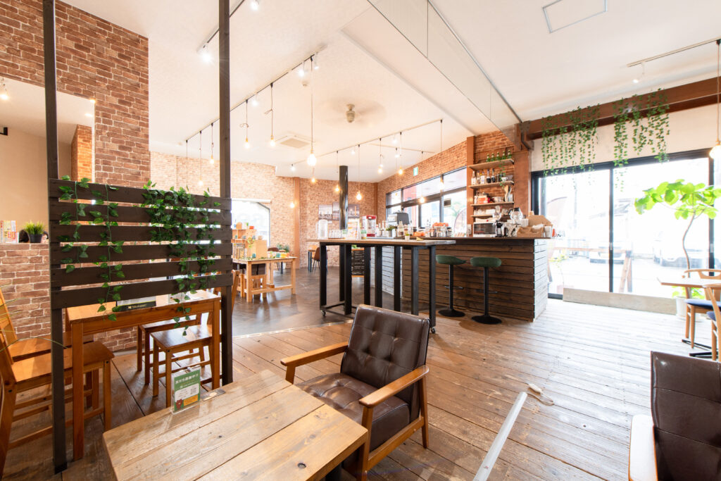 店内は廃材を再利用した温かみのあるデザインで、木のぬくもりとコーヒーの香りが心地よく溶け合う空間。